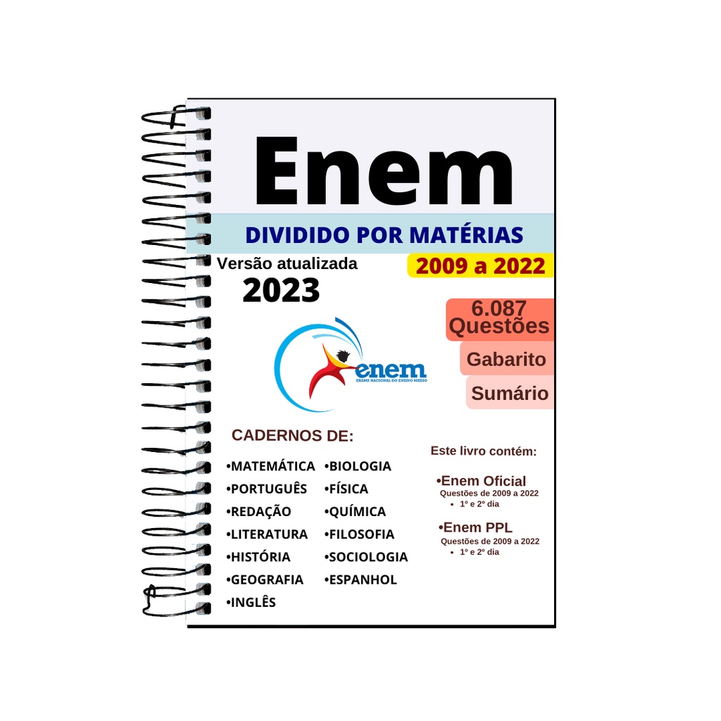 Apostila Enem 2023 Provas Anteriores 2019 a 2022 + Gabarito | Shopee Brasil