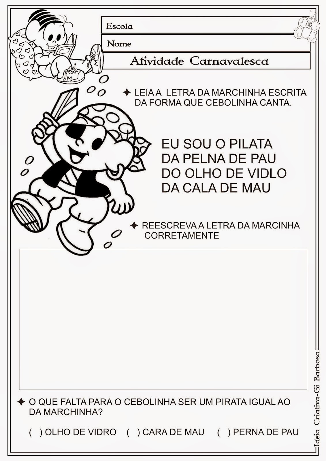 Atividade para trabalhar o carnaval em todas as séries