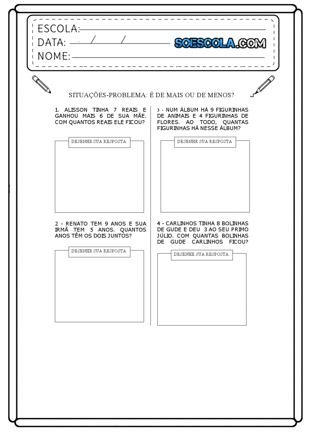 Situações Problemas de Matemática 1 ano - Para imprimir - Folha 02 — SÓ