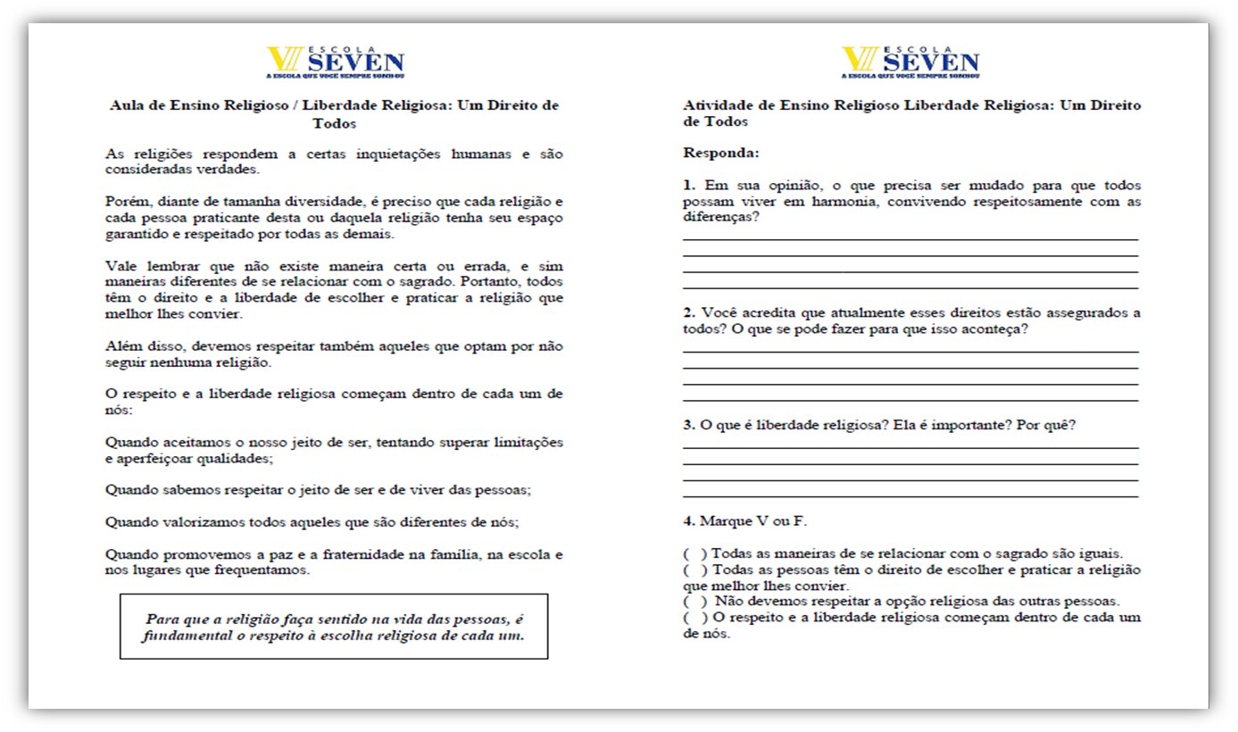 Atividade sobre liberdade religiosa