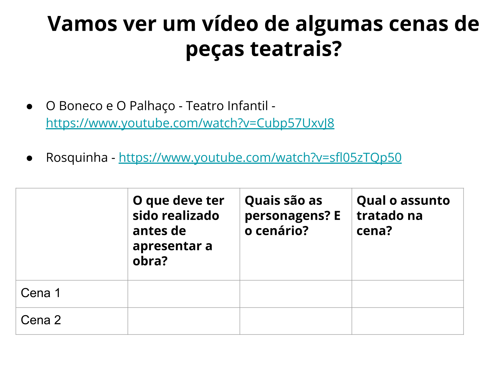 Resultado da 4º ano. Plano 1 de uma sequência de 15 planos. Resultado da 4º ano. Revisão de marcadores de falas e de cenas em textos dramáticos.