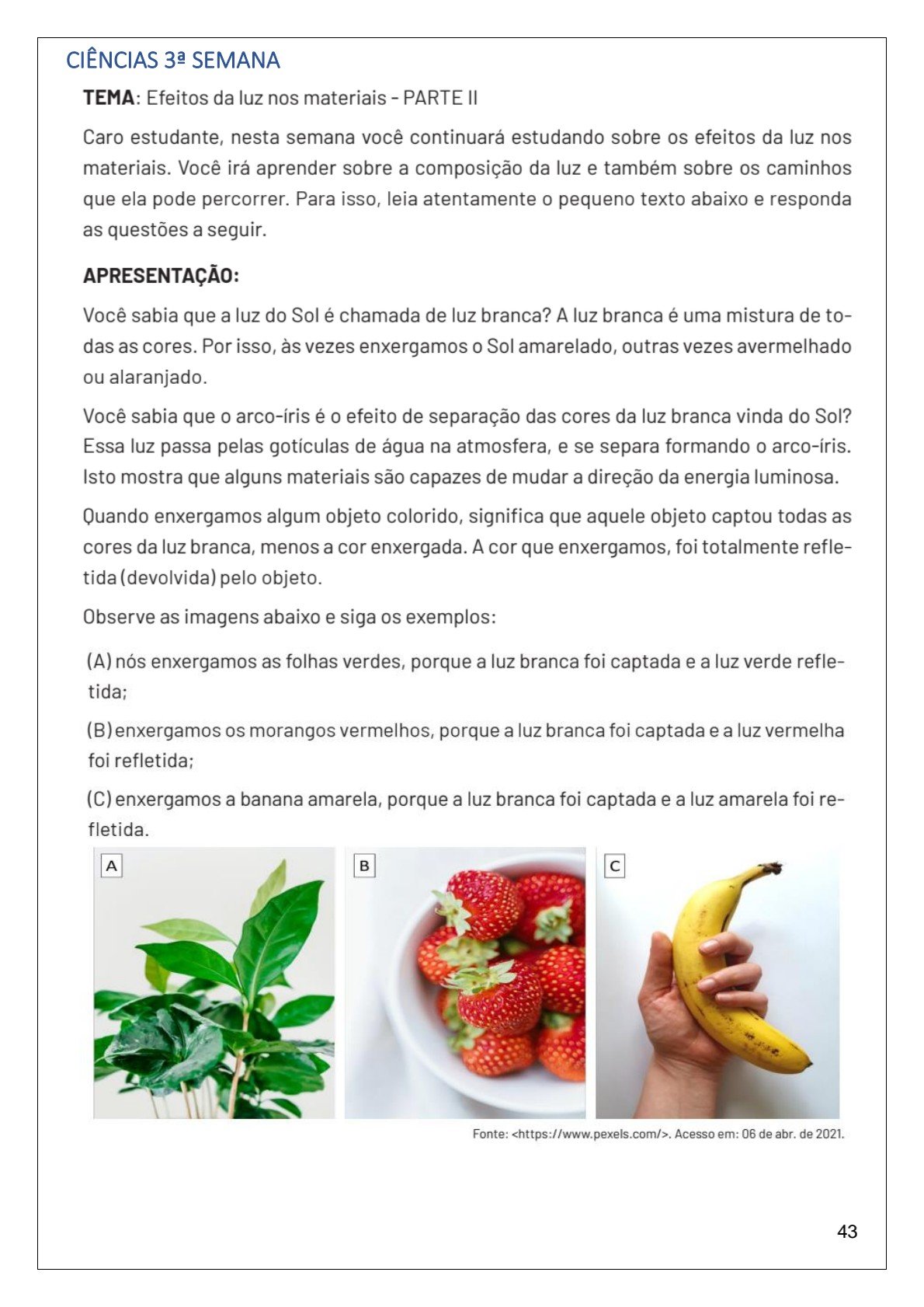 Ciências, 3º ano: Luz e Som