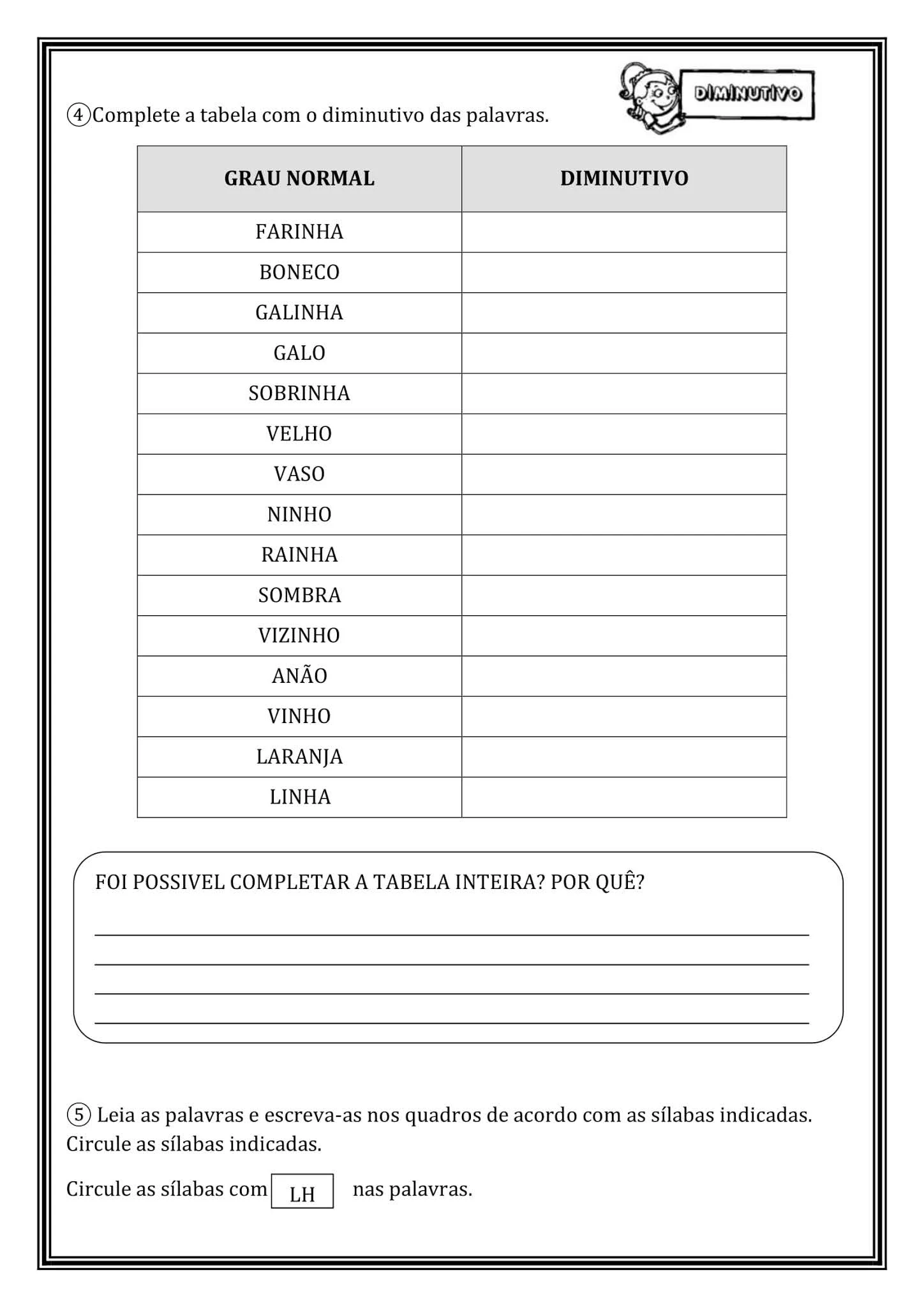 ATIVIDADES SOBRE GRAU DO SUBSTANTIVO - EXERCÍCIOS