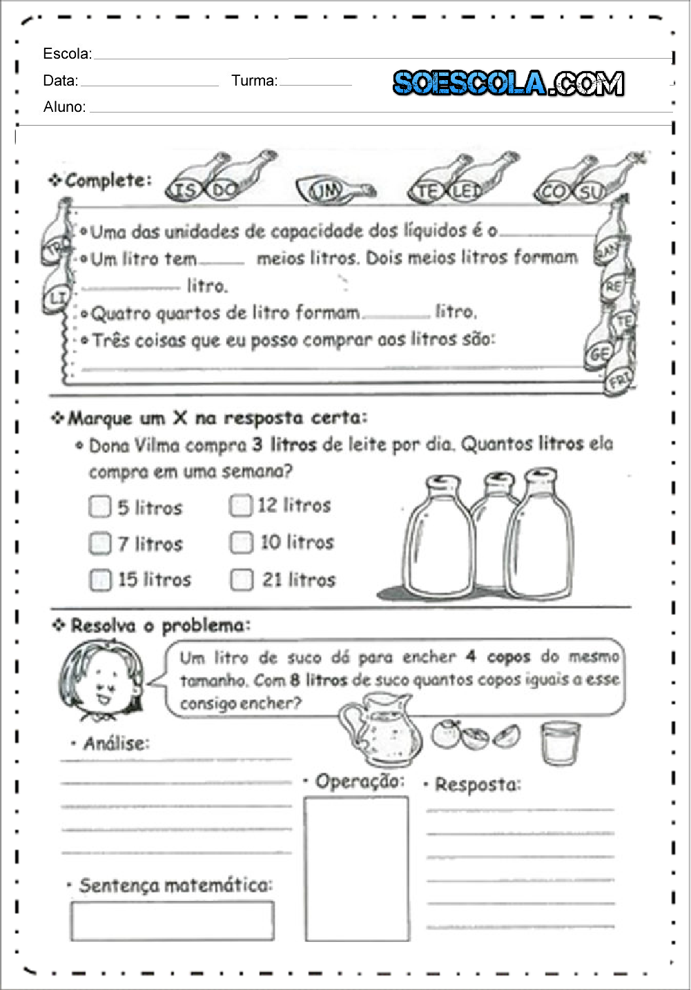 26 Atividades com Medidas de Capacidade para Imprimir - Online Cursos