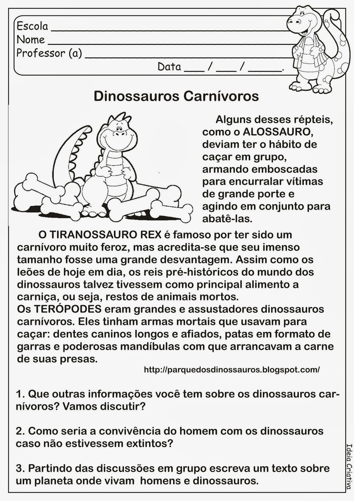 ALFABETIZAÇÃO CRIATIVA: Atividades com D. DINOSSAURO