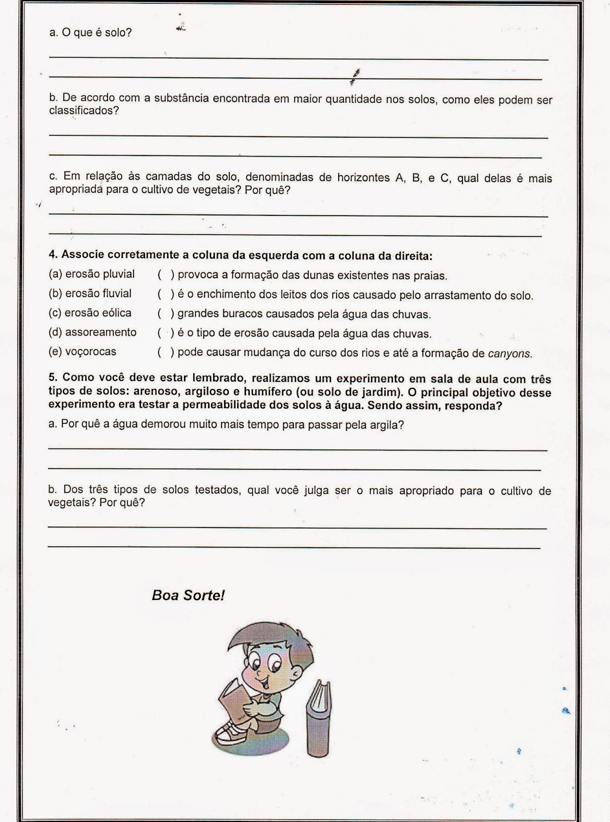 Plano 1 de uma. Resultado da youtube vídeos. Exercícios sobre propriedades do solo, poluição e erosão 6º ano ciências fundamental. 1) andando pela rua, você ve um conjunto. Resultado da exercícios sobre propriedades do solo 6º ano ciências fundamental. 1) uma aluna fazendo uma pesquisa de campo encontrou dois tipos de solos. Resultado da exercícios sobre solo, queimadas, desmatamento e erosão 6º ano ensino fundamental ciências. 1) faculdade trevisan/adaptada) o desmatamento. Debate sobre estereótipos de gênero. Nessa atividade para o dia internacional da mulher, você pode dividir a turma.