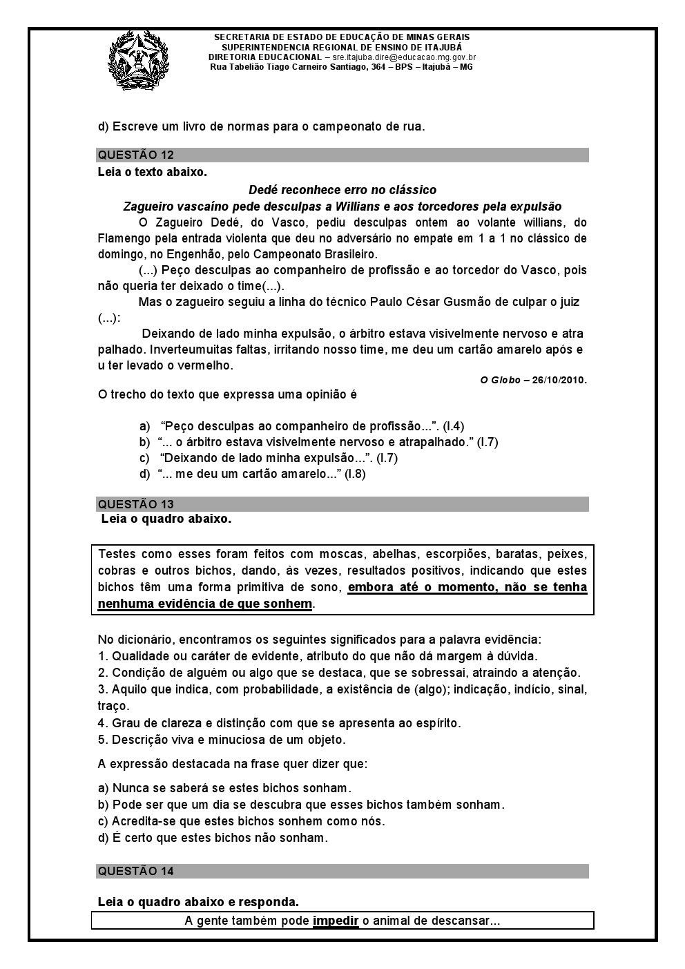 Blog Atividades Itinerantes: Avaliação Diagnóstica de Língua Portuguesa