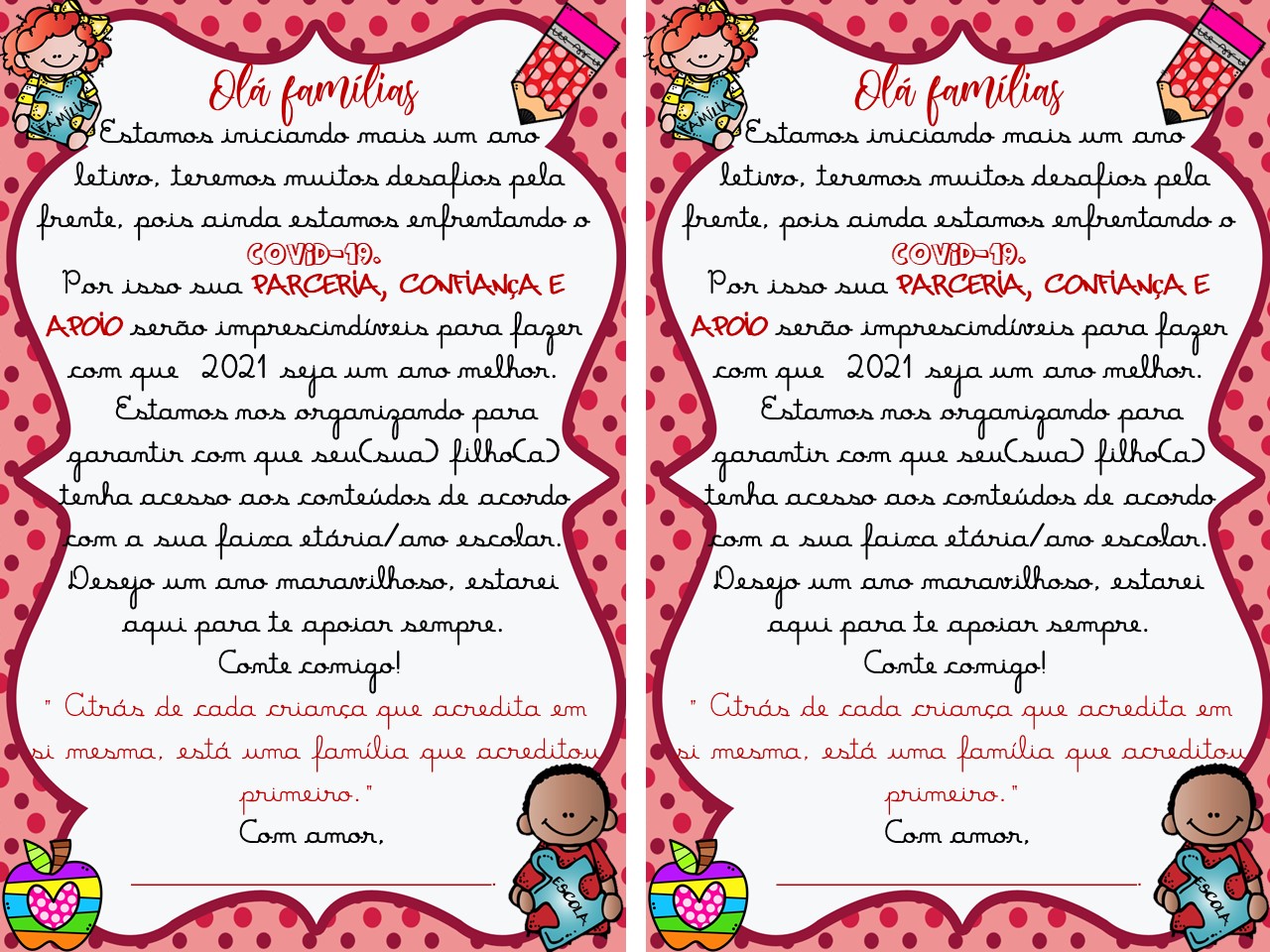 Bilhete para as famílias! | Prof Roh Pedroso