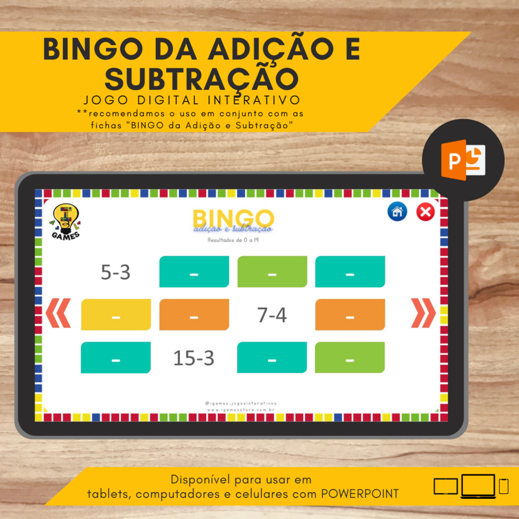 Bingo da soma e da subtração (jogos) (material gratuito)