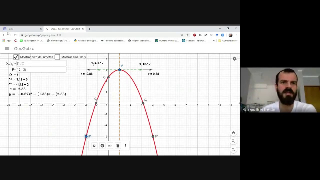 Faça gráficos de funções, plote pontos, visualize equações algébricas, adicione controles deslizantes,. Raízes ou zeros de uma função quadrática. A raízes ou zeros de uma função quadrática são os pontos onde o gráfico intercepta o eixo x. Insira sua função quadrática aqui. Ao invés de x², você pode usar x^2. Determine a função quadrática.