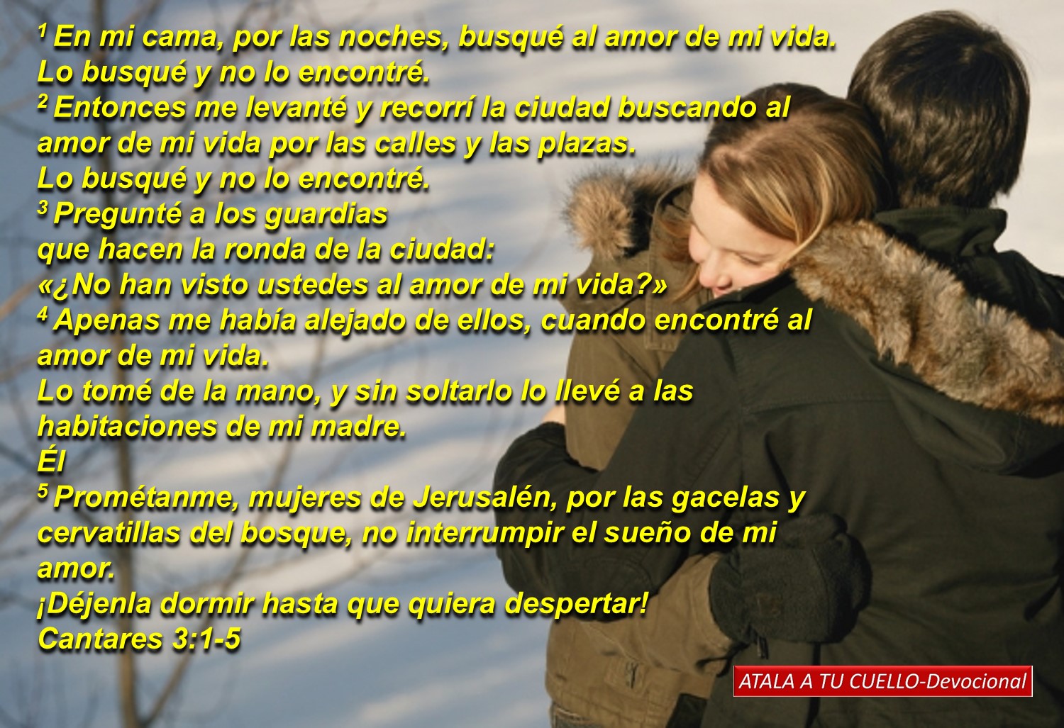 Webcantares 3 by jeferson quimelli. 19 de fevereiro de 2014, 0:00. Amor conjugal, intimidade, intimidade com deus. 6. 1 — os componentes do coro agora participam da busca. Na cena do sonho, suspeitamos que ele sabe muito bem. A noite toda procurei em meu leito aquele a quem o meu coração ama, mas não o encontrei. Web6 quem é esta que sobe do deserto, como colunas de fumaça, perfumada de mirra, de incenso, e de todos os pós dos mercadores? 7 eis que é a liteira de salomão; Estudo introdutório (em breve) 1 ela :durante as noites busquei em minha cama a quem minha alma ama; 2 por isso me.