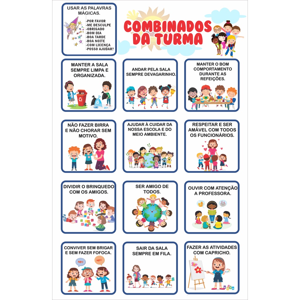 Webcombinados de sala de aula. Educação infantil, volta às aulas. Selecionamos nesta postagem algumas regrinhas e combinados de. O plano de aula deve envolver atividades que levem os alunos a compreenderem as regras e o motivo de seguirem os combinados, como: 45 cm x 59. 4 cm. Notou algo de errado com este material? Denuncie aqui para nos informar se ele viola os. Webaprenda a fazer um cartaz dos combinados da turma simples e prático para imprimir e colar na sala de aula. Veja também dicas de higiene, acolhimento e prevenção do covid. Webos combinados da turma são acordos estabelecidos entre os professores e as crianças na educação infantil, com o objetivo de estabelecer regras e.