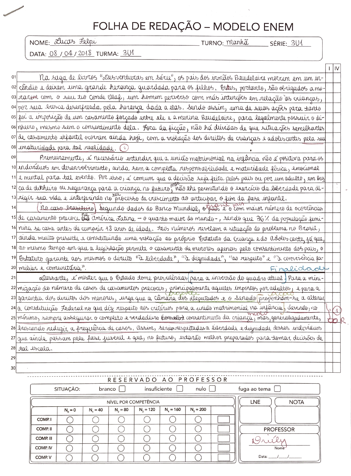Redação sobre: CASAMENTO INFANTIL! E agora