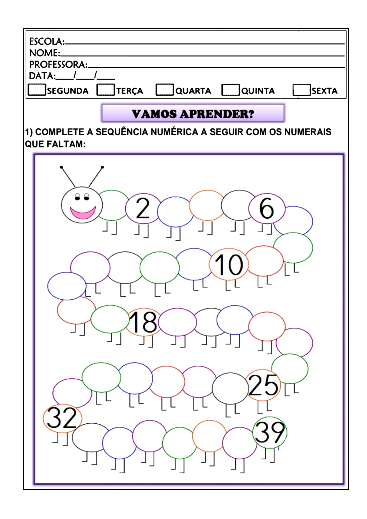 Atividades de Sequência Numérica prontas para Imprimir