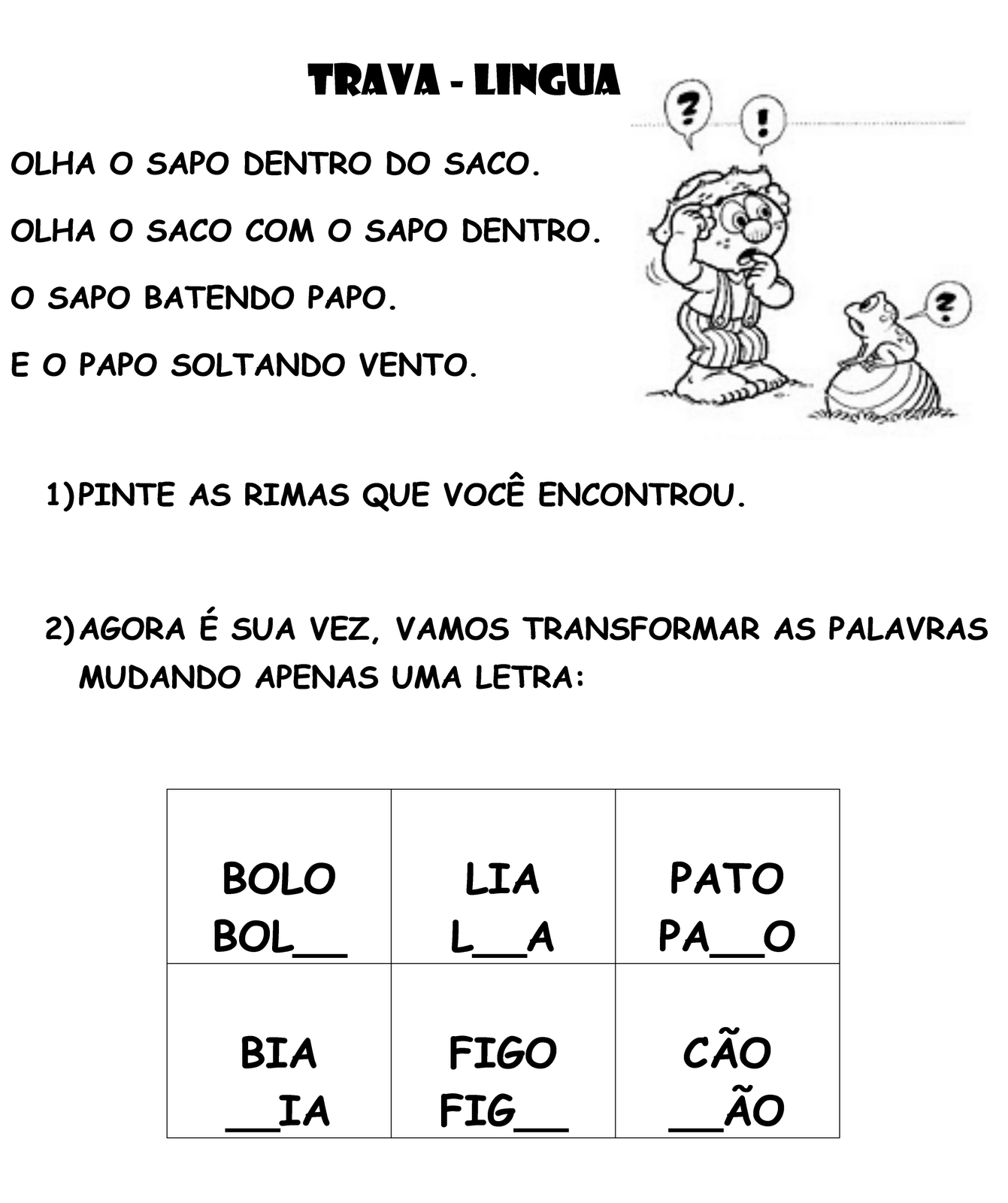 Língua Portuguesa: trava-língua Atividade de língua portuguesa para