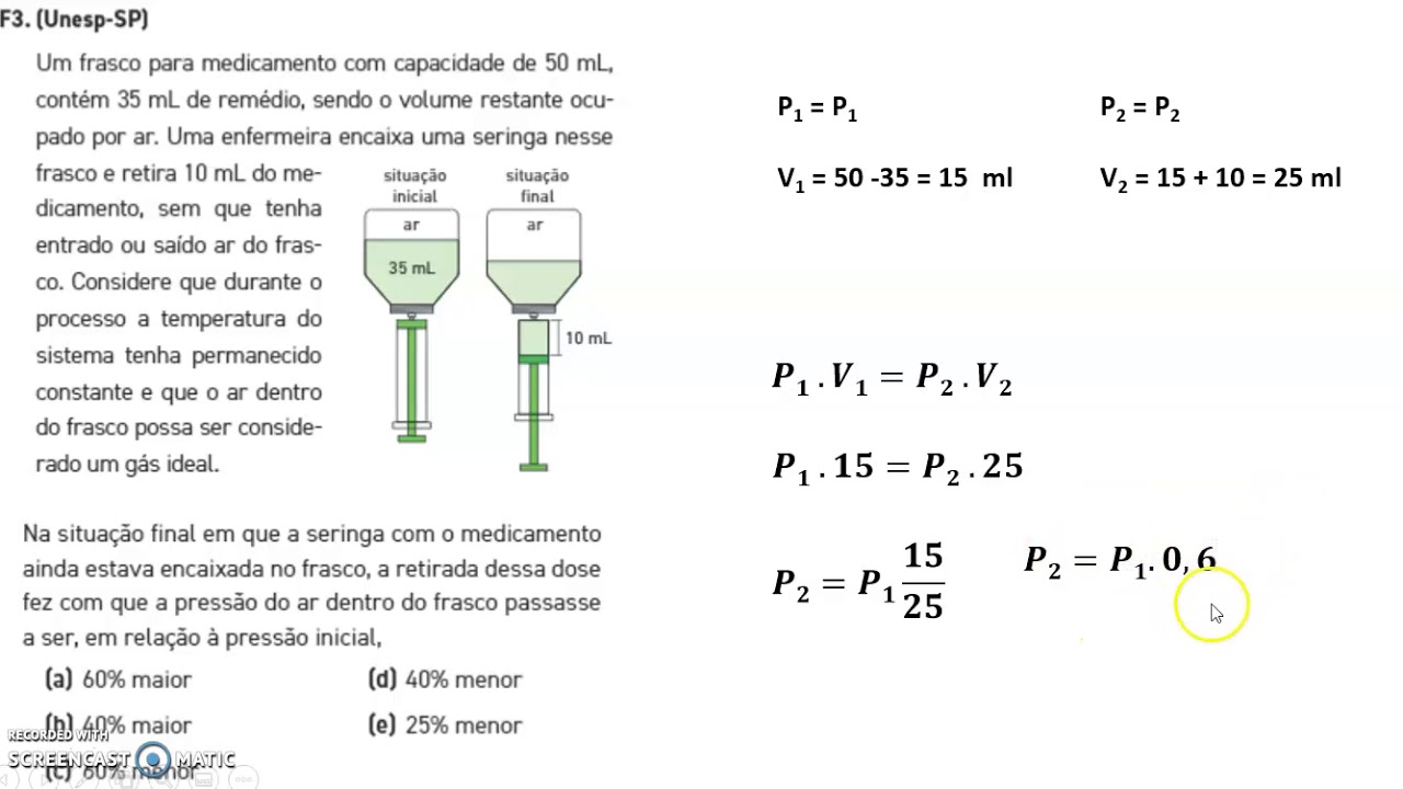 Equação Geral dos Gases. Exercícios resolvidos. P1.V1/T1=P2.V2/T2 - YouTube