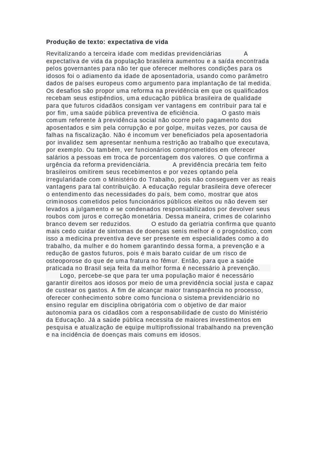 Redação Sobre Expectativa De Vida - EDUCA