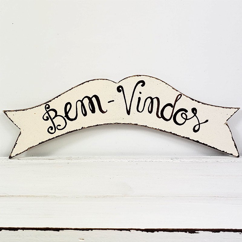 FAIXA DECORATIVA DE MADEIRA BEM VINDO BRANCO - PLACA BEM VINDO - RICA