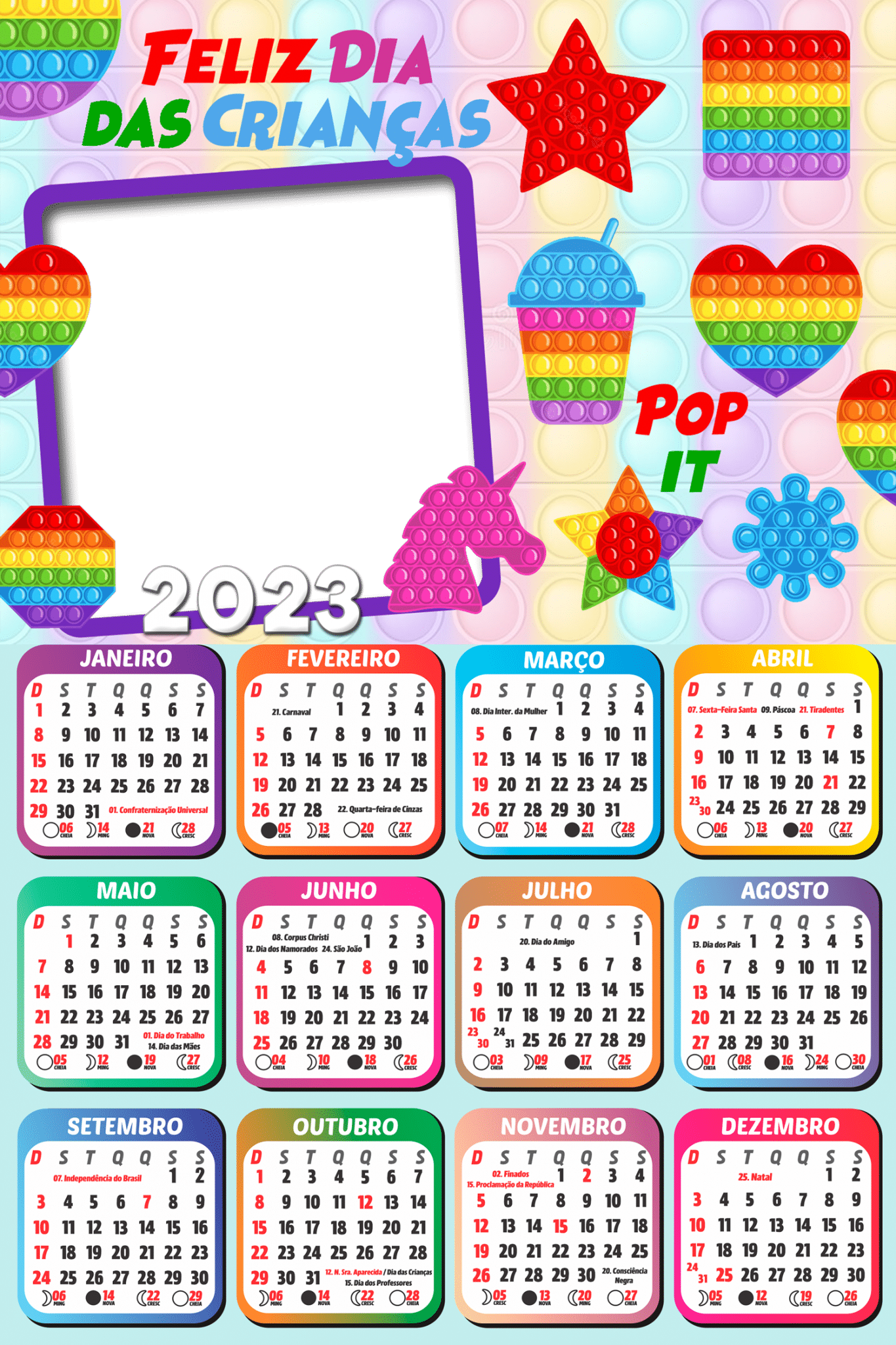 Calendário 2023 Feliz Dia das Crianças Pop It Color PNG - Imagem Legal