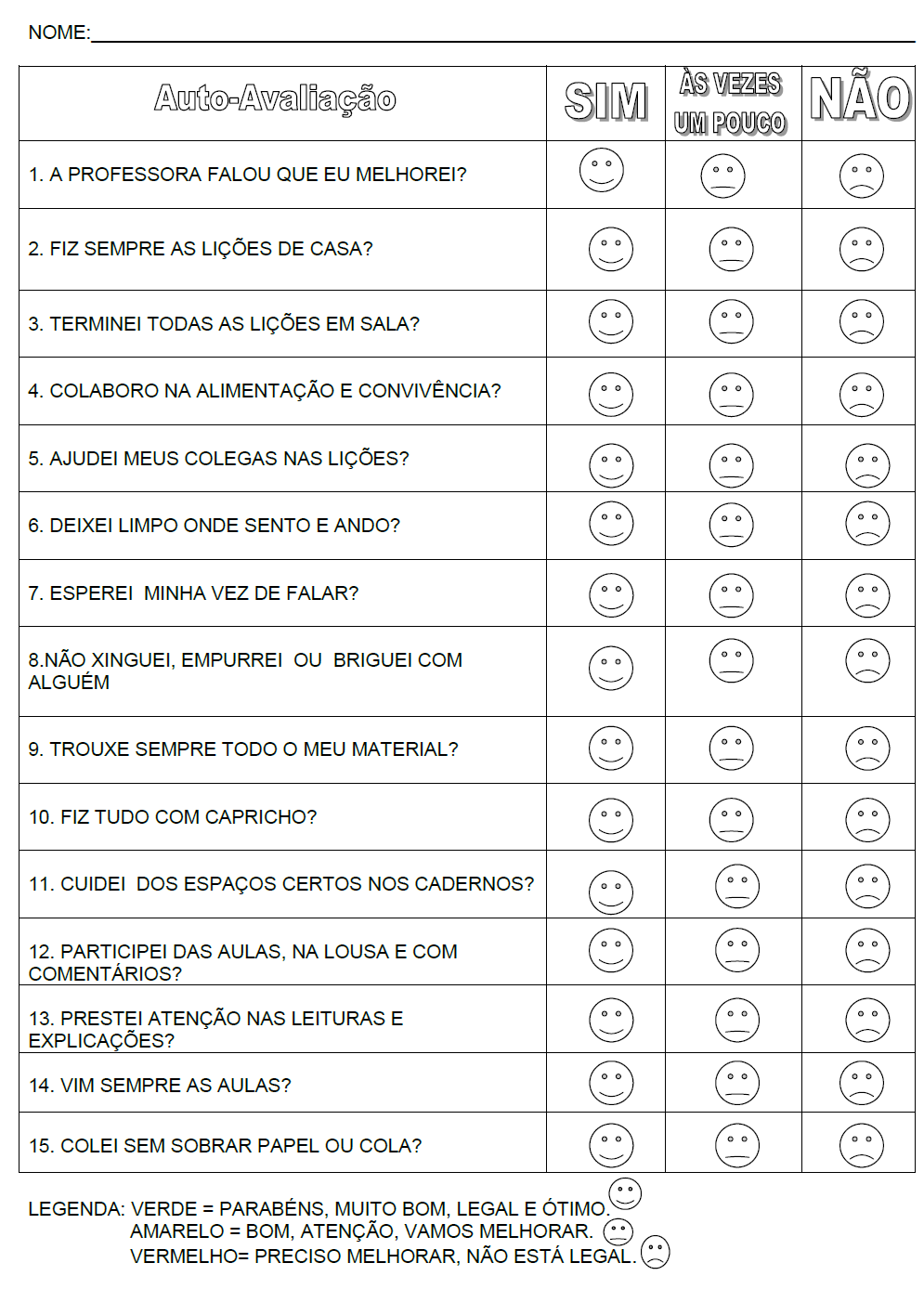 Modelos de autoavaliação — SÓ ESCOLA