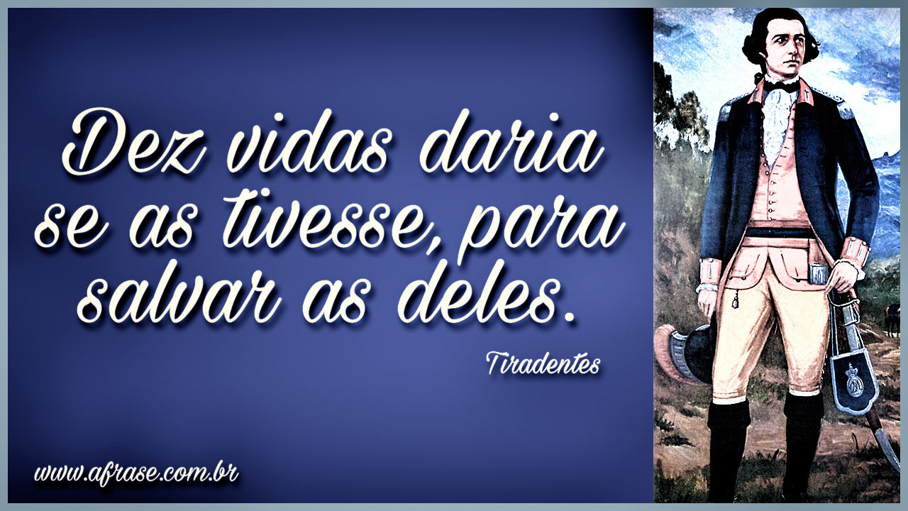 Criado em 20/04/14 18h48 e atualizado em 28/01/15 11h47. A história afirma que, antes de morrer, tiradentes disse: “jurei morrer pela independência do brasil, cumpro a minha palavra! Tenho fé em deus e. De bled (eslovênia) para a bbc news brasil. Tiradentes foi executado em 21 de abril de 1792 no rio de janeiro. A forbes separou 40 frases que devem ser ditas para você mesmo ou para pessoas que encontra ao longo da sua trajetória de vida, sejam elas do convívio íntimo, do ambiente. Qual foi a frase que tiradentes disse antes de morrer? “pois seja feita a vontade de deus. Mil vidas eu tivesse, mil vidas eu daria pela libertação da minha.