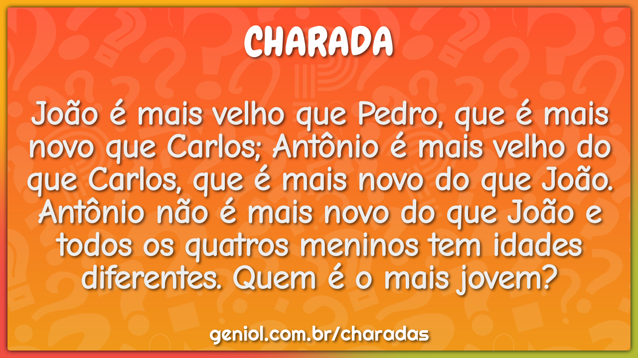 João é mais velho que Pedro, que é mais novo que Carlos; Antônio é