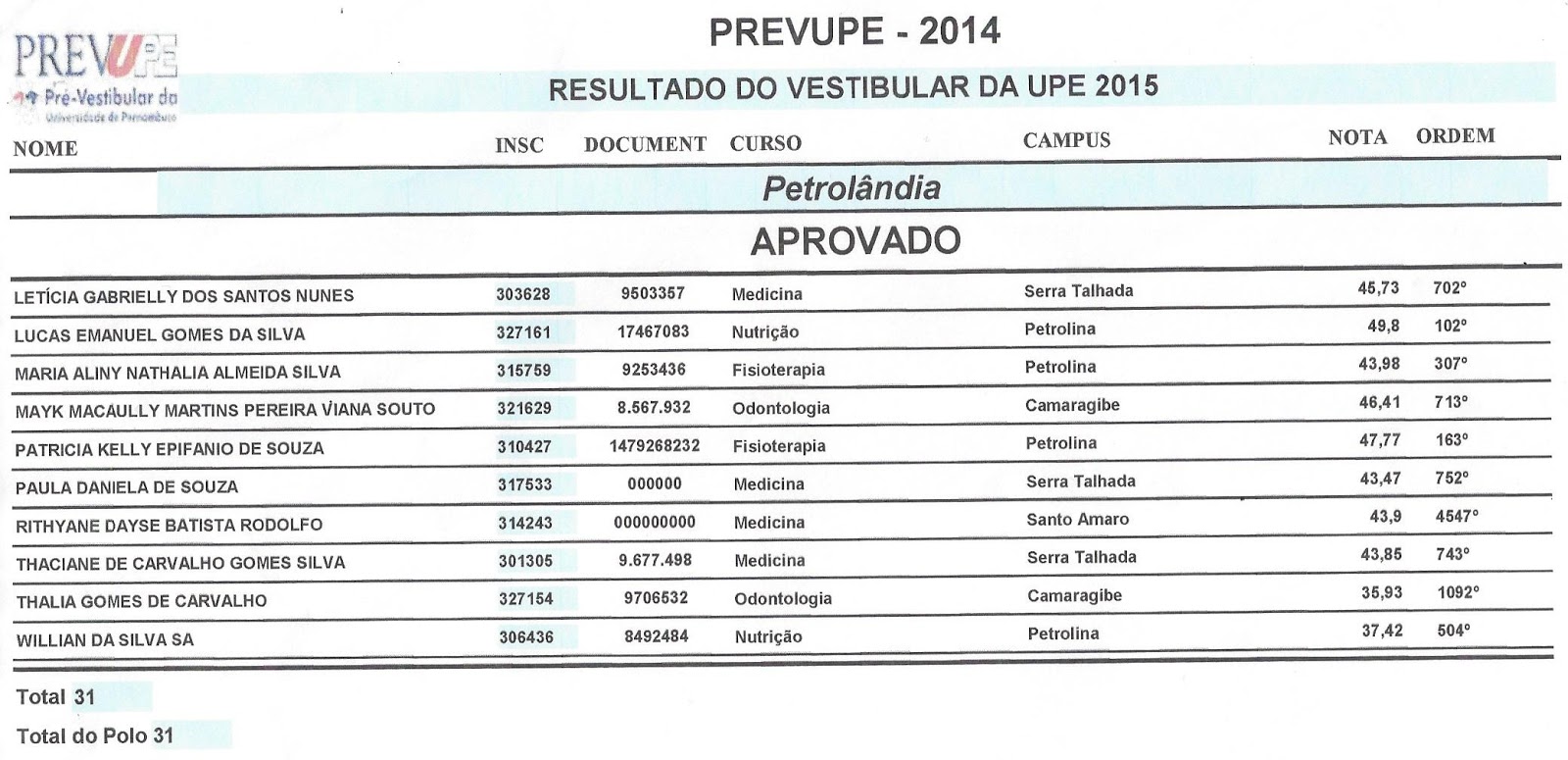 A lista reúne 610. Webupe divulga chamada regular do sisu 2023. A comissão permanente de concursos acadêmicos da universidade de pernambuco (cpca/upe) divulga o resultado da chamada regular do sistema de seleção unificada (sisu). Os nomes podem ser consultados em. Veja lista de aprovados na ufpe, notas e como será matrícula a ufpe oferece no sisu 2023 um total de 7. 012 vagas, para cursos.