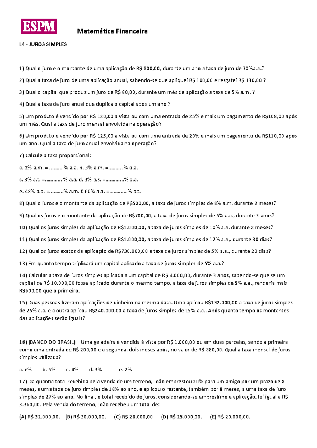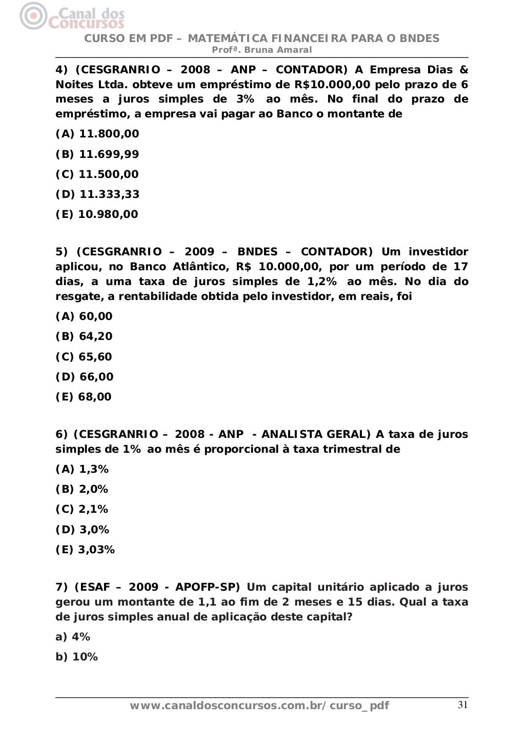 Lista De Exercícios Juros Simples 7 Ano - EDULEARN
