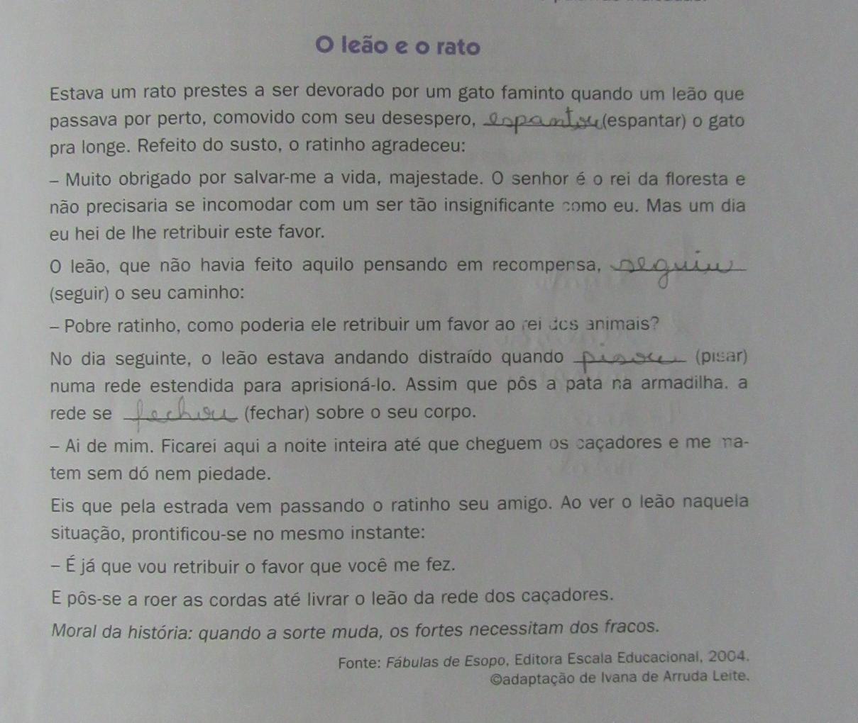 Atividade destinada aos alunos do 5º ano, em base do livro Ler e Escrever - volume 2. A atividade proposta foi adaptada para ...