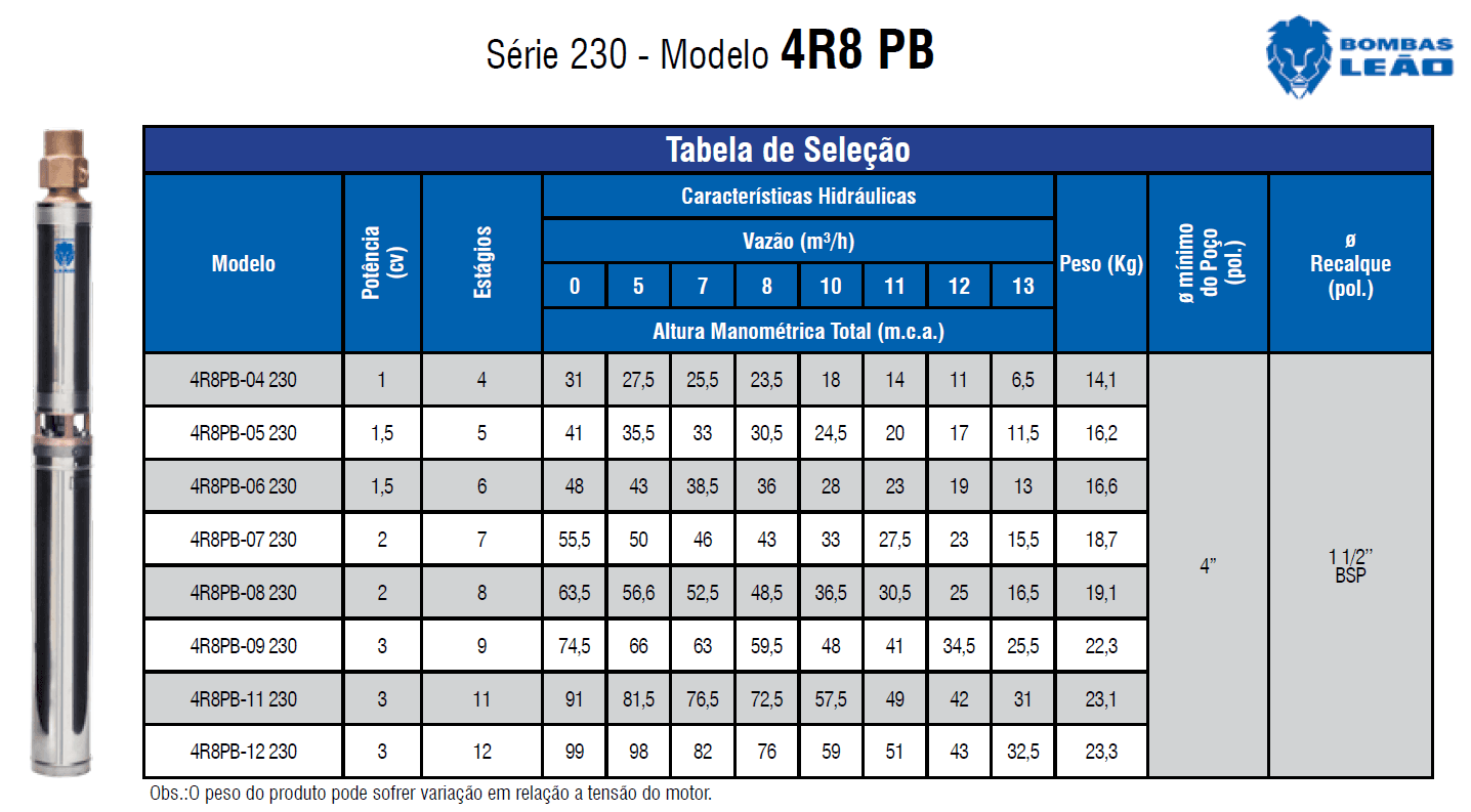 Tabela de Selecao Leao 08 2018 WEB - Tabela de de Bombas e Motobombas