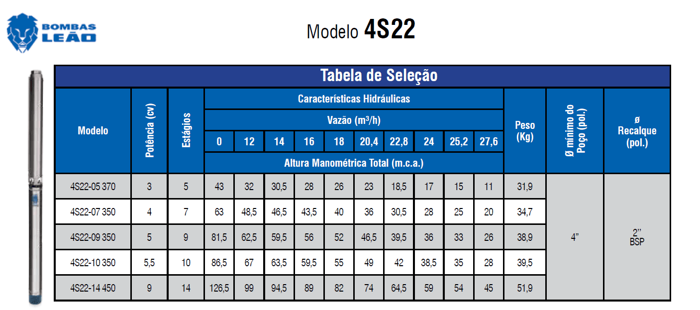 TABELA DA LEÃO PARA ESCOLHA DE BOMBA