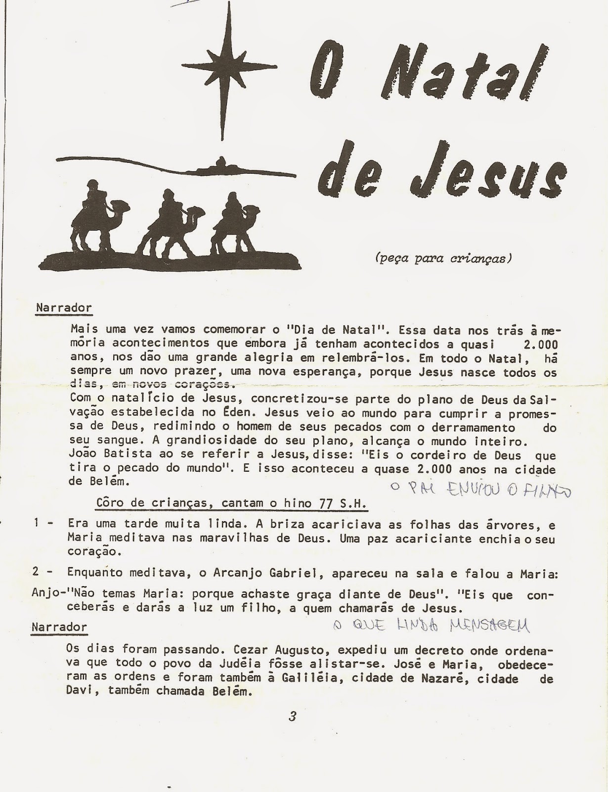 CANTINHO DAS HISTÓRIAS BÍBLICAS: PEÇA TEATRAL INFANTIL PARA O NATAL